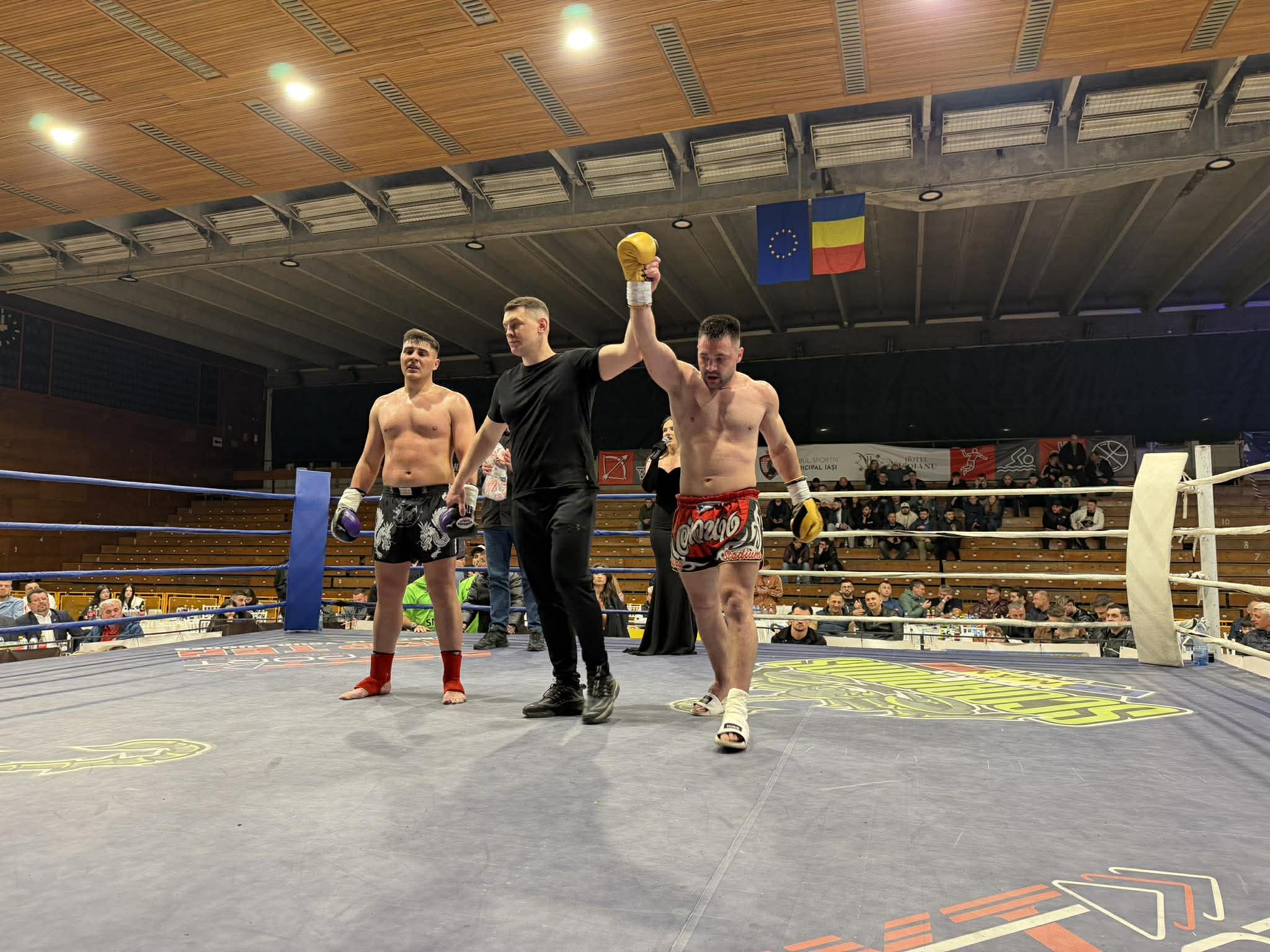 Și Andrei Sîrghi a avut o evoluție foarte bună în gala de la Iași. Sportivul antrenat la Tornado Vaslui a câștigat meciul împotriva lui Cezar Buzdugan la finalul celor trei runde, după o luptă controlată și bine gestionată pe toată durata confruntării.