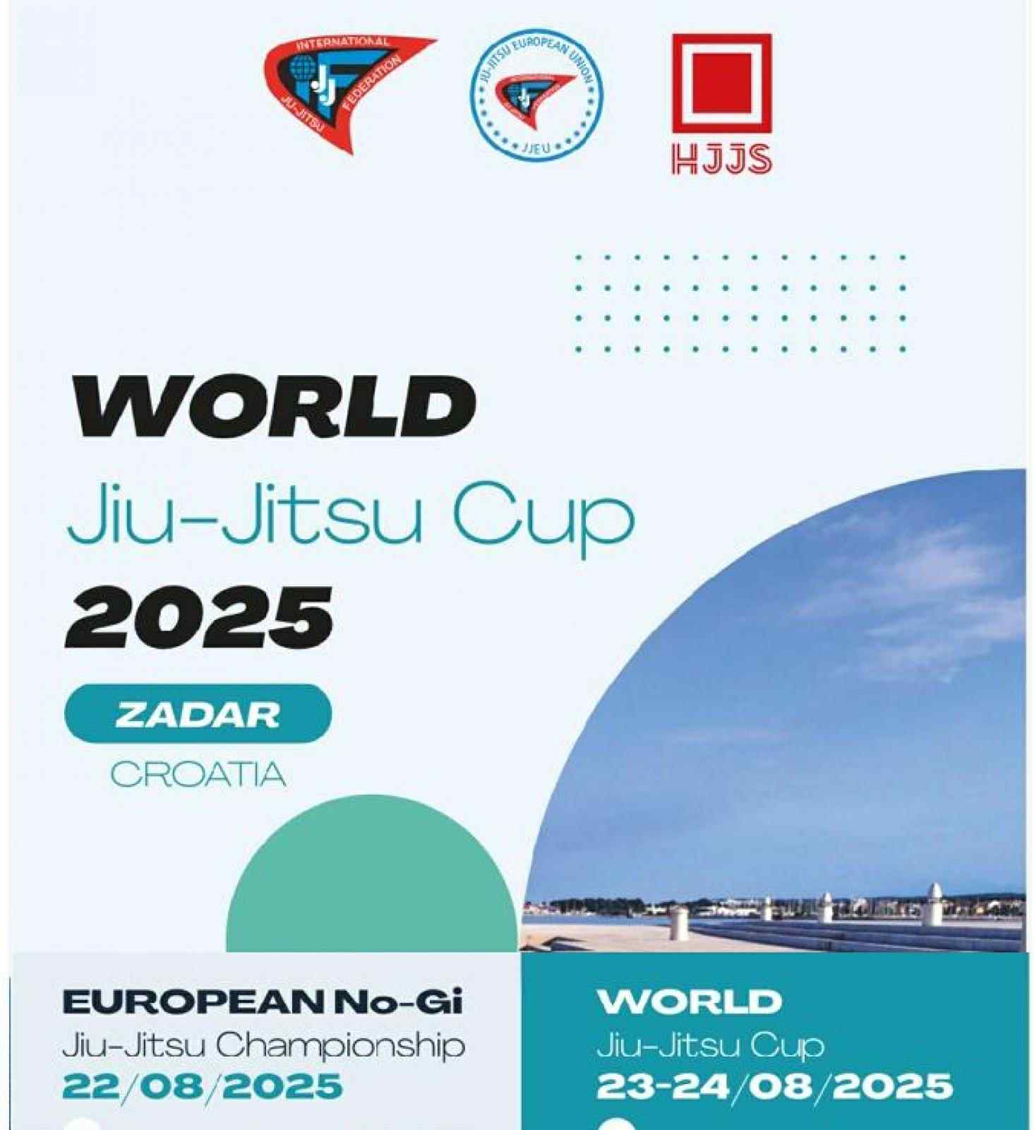 Orașul croat Zadar devine, între 22 și 24 august, capitala mondială a jiu-jitsu-ului, odată cu desfășurarea a două competiții internaționale majore: European Championship No-Gi Jiu Jitsu (22 august) și JJIF World Cup Jiu Jitsu 2025 (23-24 august). Evenimentele reunesc peste 700 de sportivi din 25 de țări, printre care forțe consacrate în acest sport: Emiratele Arabe Unite, Israel, Kazahstan, Ucraina, Uzbekistan și Republica Moldova.
