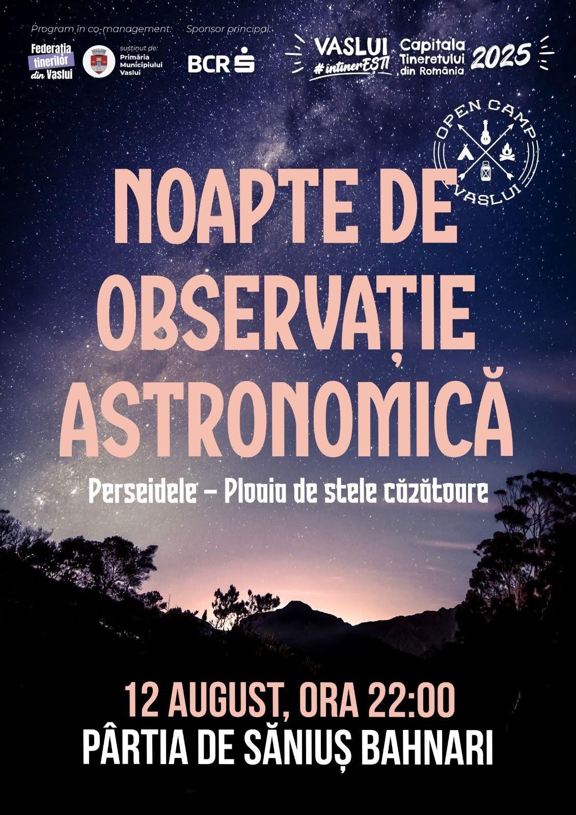 Participanții vor avea la dispoziție telescoape și ghizi pasionați, care vor oferi explicații despre stelele și planetele vizibile în noaptea de vară. Atmosfera va fi completată de muzică live la chitară, iar pentru copii sunt pregătite activități speciale, astfel încât și cei mici să se bucure de magia cerului înstelat.