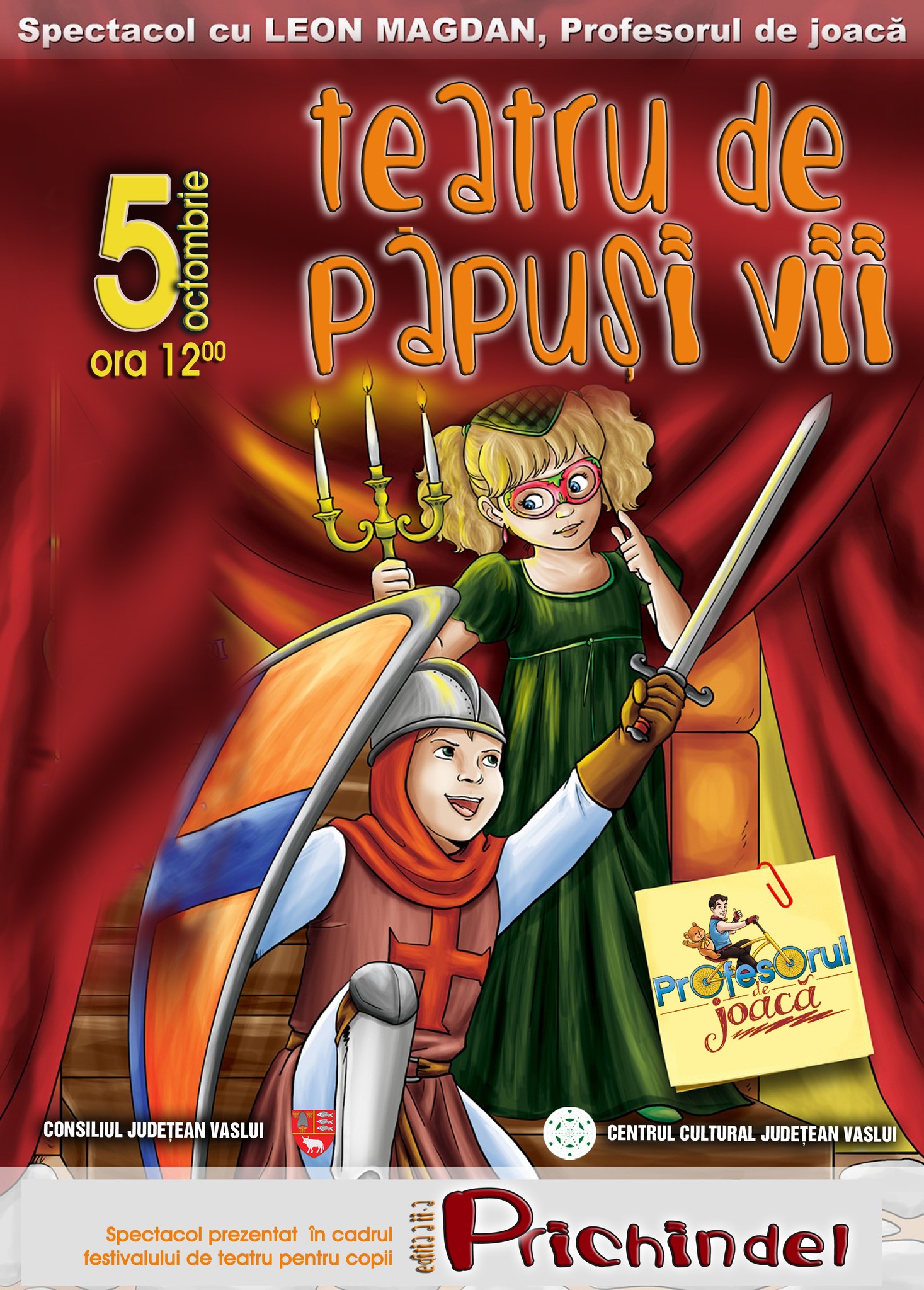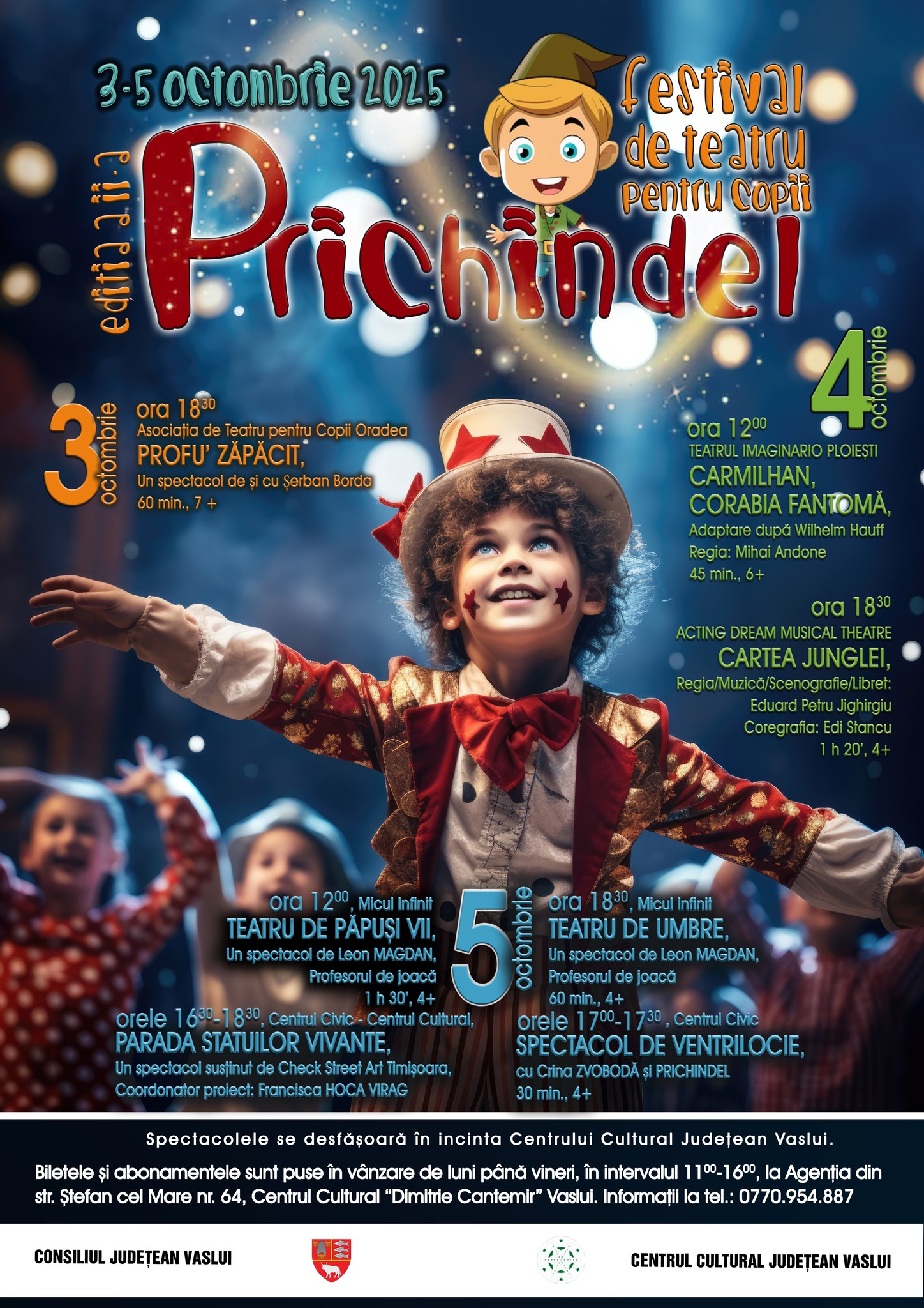Centrul Cultural Județean Vaslui anunță cea de-a doua ediție a Festivalului de teatru pentru copii „Prichindel”, care va avea loc între 3 și 5 octombrie. Evenimentul transformă orașul într-o scenă de poveste, aducând spectacole dedicate copiilor, dar și părinților și bunicilor.
