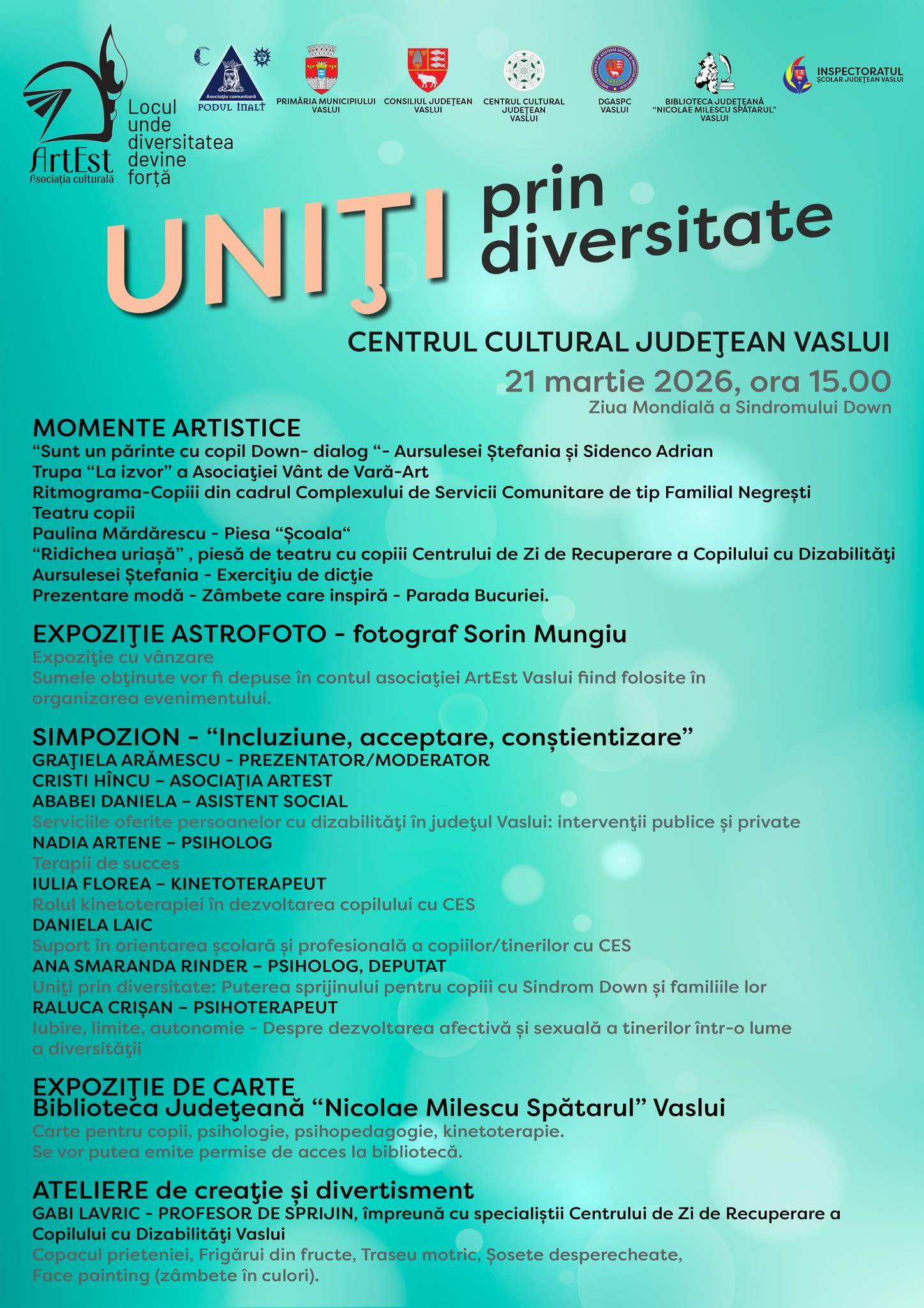 La Vaslui, această zi va fi marcată printr-o inițiativă comunitară organizată de Asociația ArtEst, care propune un eveniment dedicat diversității și solidarității.